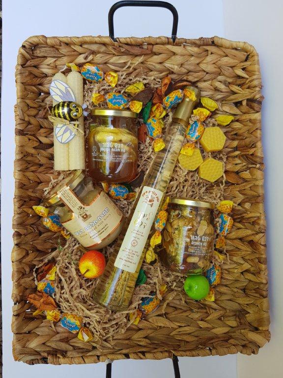 סלסלת קש עם מגוון מוצרים מהכוורת